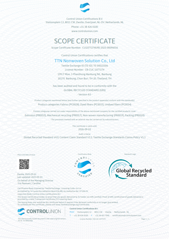 บริษัท ทีทีเอ็น นันวูเว่น โซลูชั่น จำกัด ผู้นำด้านการผลิตผ้าใยสังเคราะห์และผ้าสักหลาด (felt) ในประเทศไทย ด้วยประสบการณ์มากกว่า 35 ปี และได้รับความ